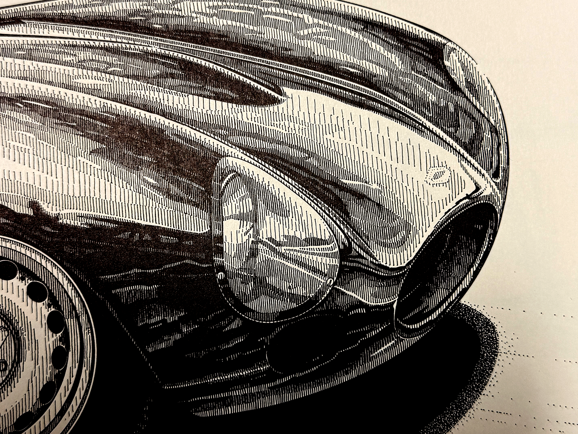 Before starting Cavallino Magazine and the Cavallino Classic, John had an excellent following for his automotive art. But unknown to many were the pen & ink portraits he did for private clients but also for many magazines: Autoweek, Road & Track, Sports Car Magazine, Sports Cars of the World, The New York Times, Old Cars Magazine, Special-Interest Auto.