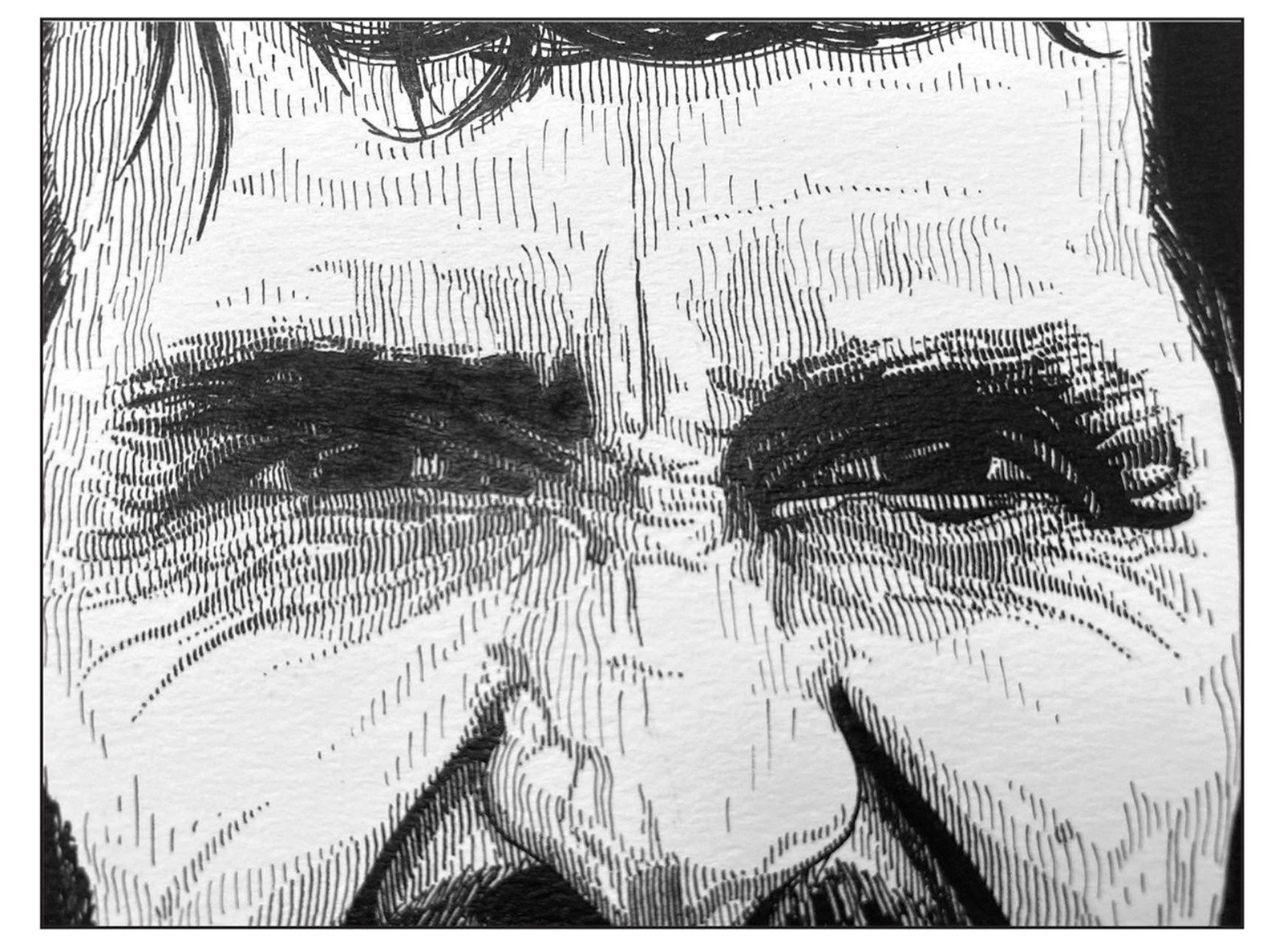 1973 David Hobbs Portrait - Original Pen & Ink Drawing by John W. Barnes, Jr.